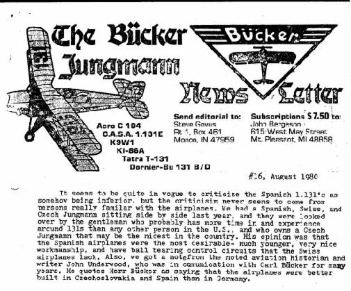 Bücker himself praised the great work made by the Spanish manufactured ‘Jungmann’ and ‘Jungmeister’s. The historian John Underwood echoed his comments in the Bücker Newsletter.